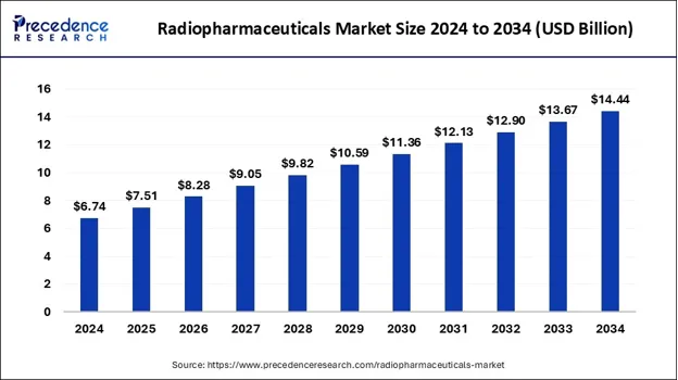 2024-2034 年放射性药物市场规模(图片来源:Precedence Research)