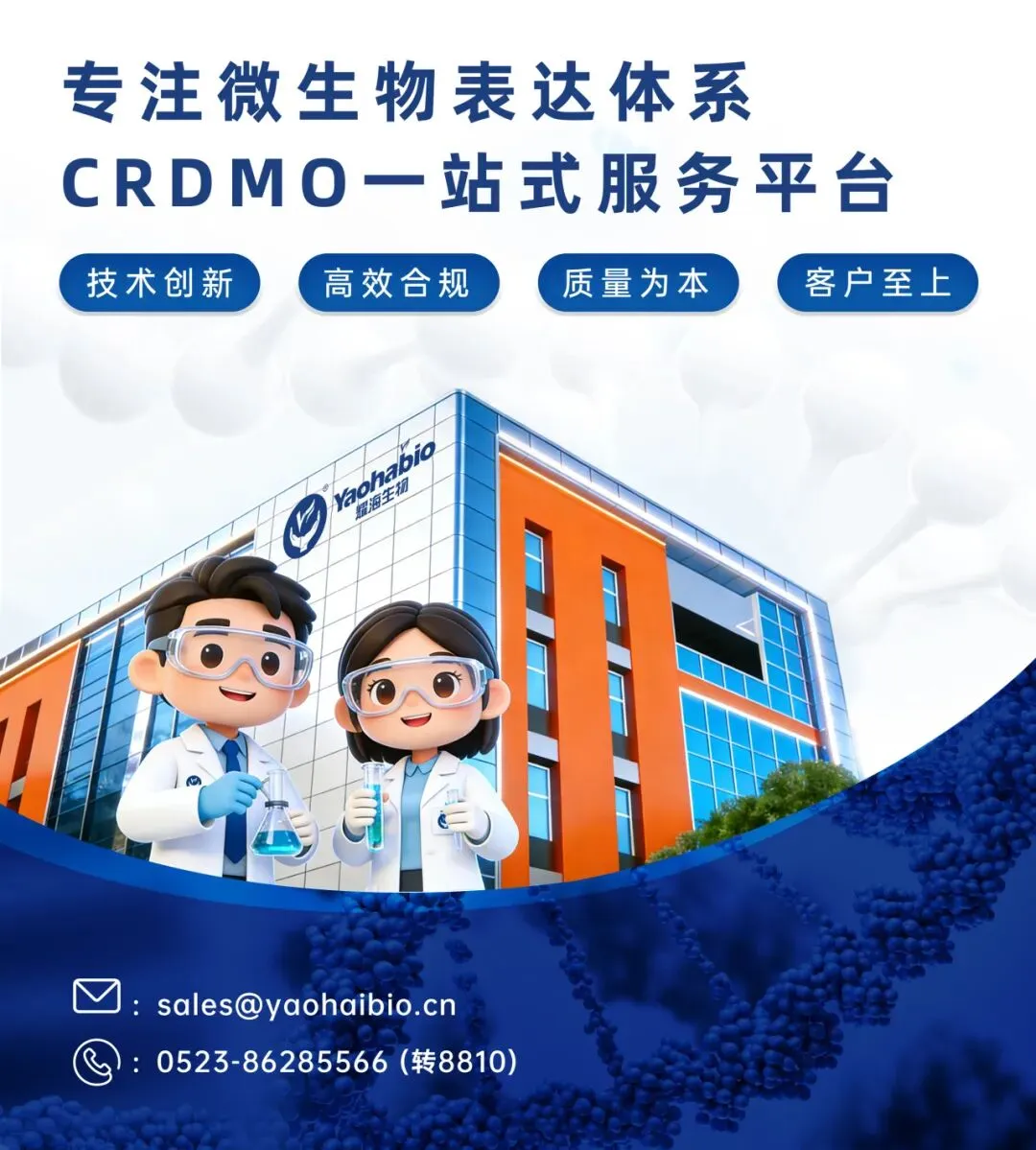 耀海生物,作为全球生物医药产业蓬勃发展的亲历者和见证者,深耕微生物表达体系CDMO服务多年,业务聚焦在“重组蛋白/多肽、mRNA核酸药物、纳米抗体、重组质粒及重组新型疫苗”等领域,致力于打造CRO/CDMO/MAH开放式、一体化的产研服务平台。