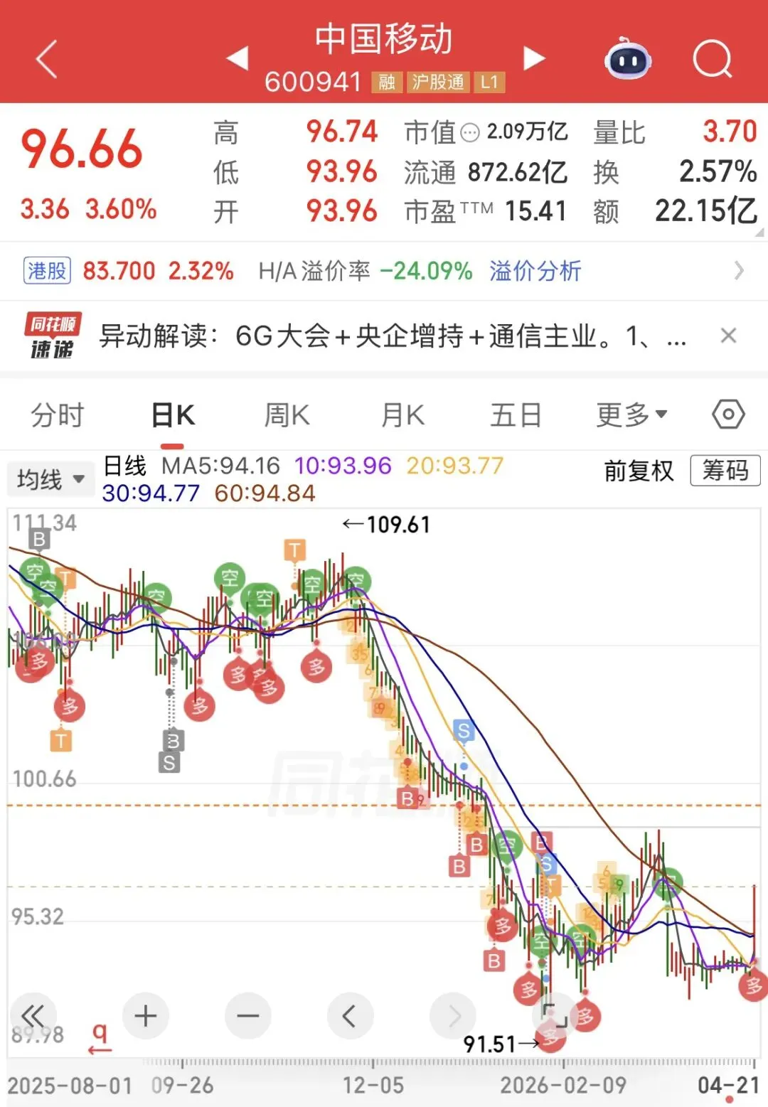 我个人觉得,87-96元这个区间,是今年比较舒服、安全边际较高的攒股区间。如果市场能给到87以下(股息率超5.5%),那就是送钱的机会。