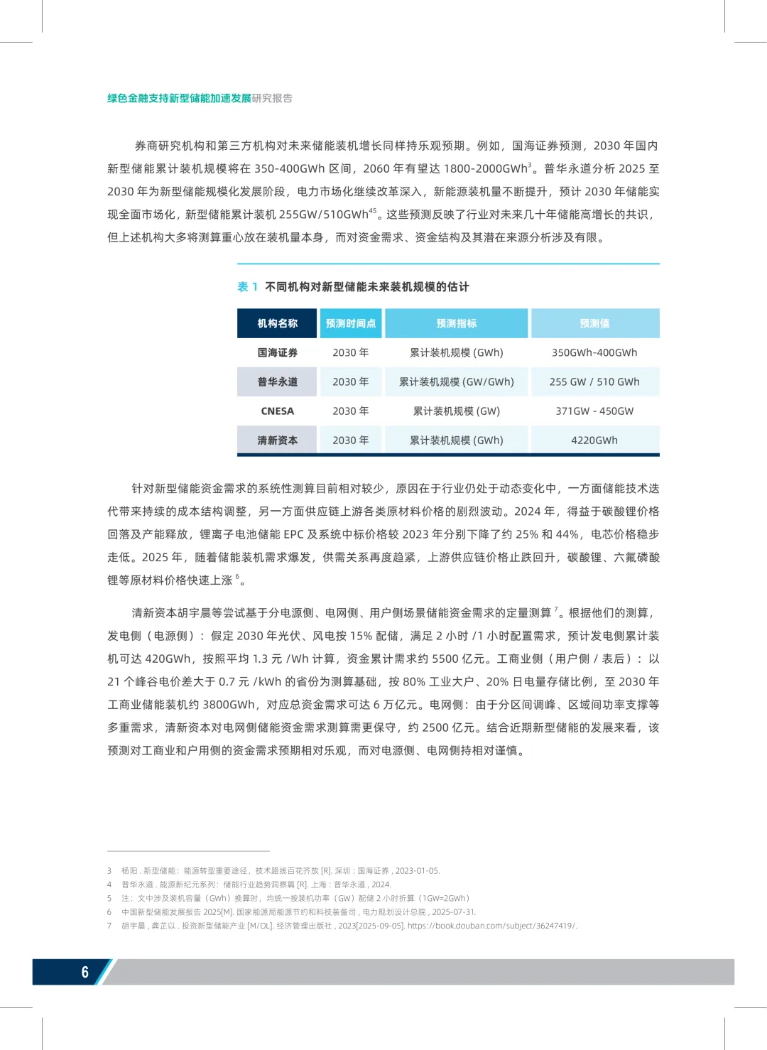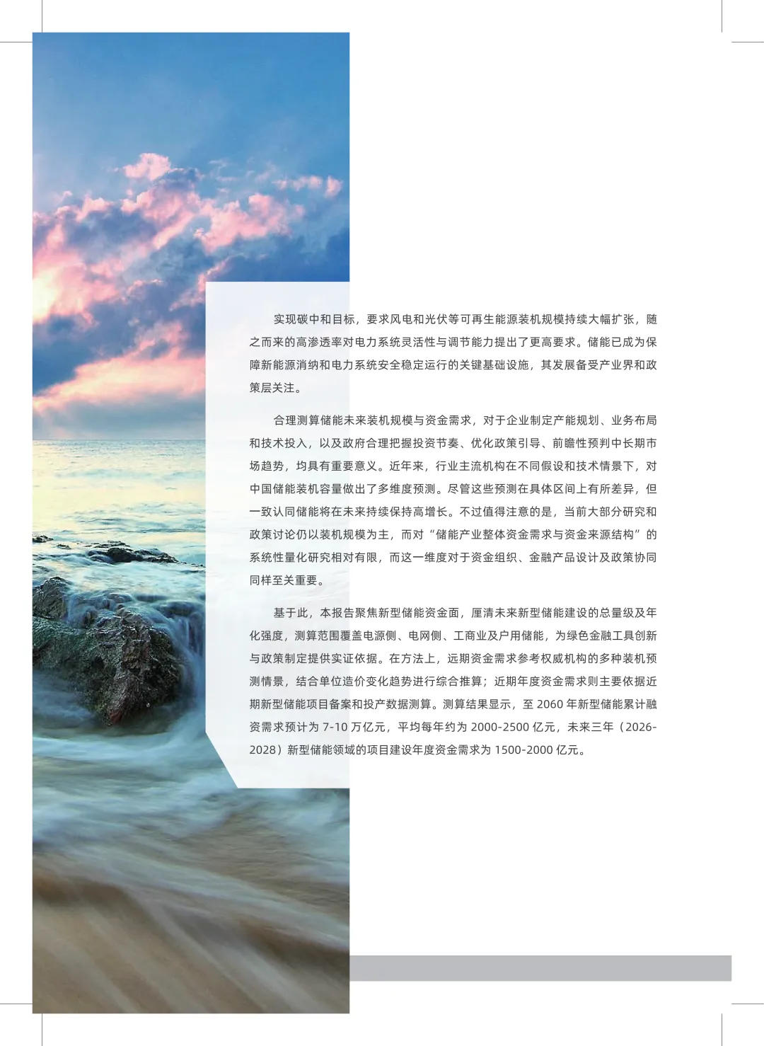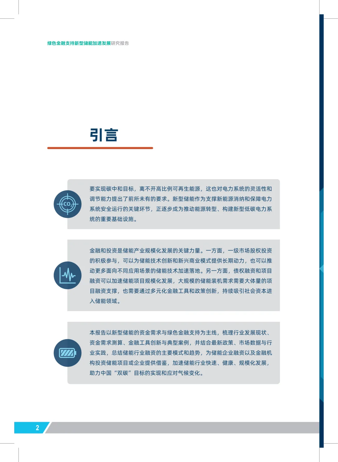 本报告以新型储能的资金需求与绿色金融支持为主线,梳理行业发展现状、资金需求测算、金融工具创新与典型案例,并结合最新政策、市场数据与行业实践,总结储能行业融资的主要模式和趋势,为储能企业融资以及金融机构投资储能项目或企业提供借鉴,加速储能行业快速、健康、规模化发展,助力中国“双碳”目标的实现和应对气候变化。
