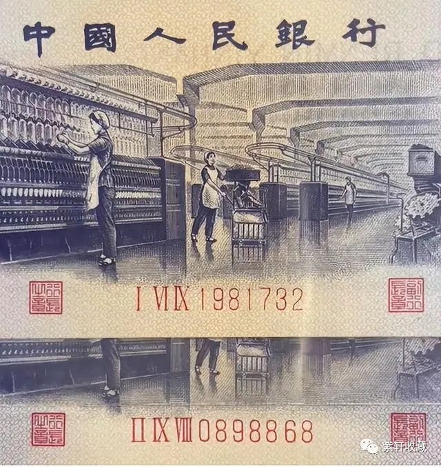 它们的发行时间是,短码先发行,短码的印制时间是1982年到1985年的3月,1985年3月以后北京印钞厂换了一台新的号码机,新号码机它印出来的冠号跟数字间距比较宽一点,所以后面就变成长码了,长码的印制时间是1985年3月到1987年,从时间上我们来看先是短码后是长码。