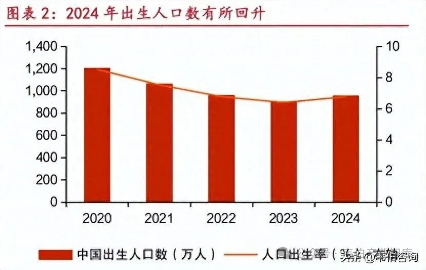 根据国家统计局,2024年中国出生人口数量954万人,比2023年增加52万人,自2017年以来首次回升。