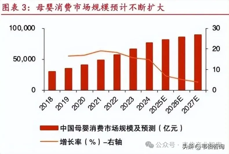 2018-2024年,中国母婴消费市场规模稳步上升,2024年中国母婴消费市场规模为76299亿元,预计2027年中国母婴消费市场规模或将达89149亿元。