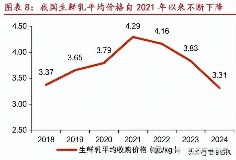 图表8:我国生鲜乳平均价格自2021年以来不断下降