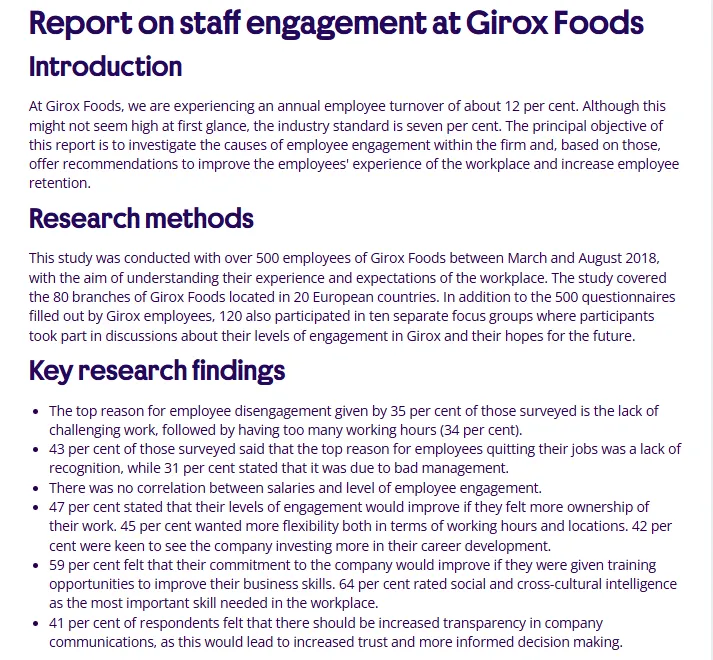 The wording of the headings may differ. For example, you could title the third section Findings or Main findings. However, the structure of all reports is generally the same: