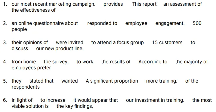 Task 3: Put the words or phrases in the correct order to make sentences.