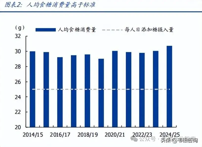 图表 2: 人均食糖消费量高于标准