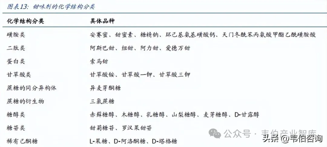 图表 13: 甜味剂的化学结构分类