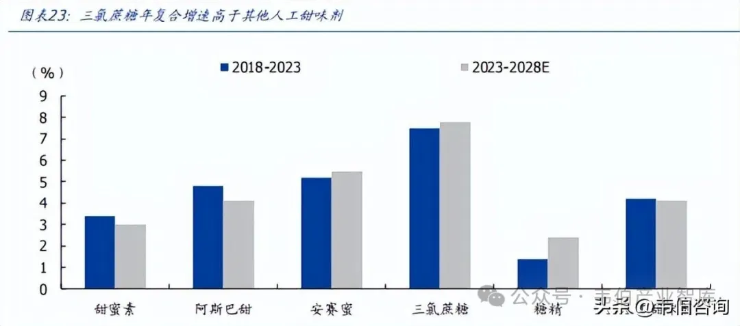 图表 23: 三氯蔗糖年复合增速高于其他人工甜味剂