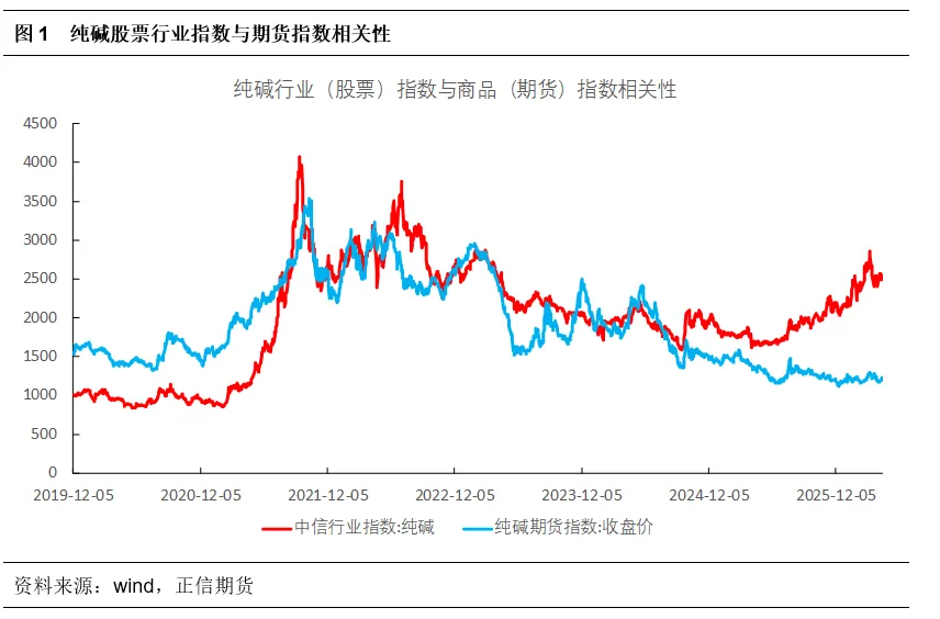 纯碱作为基础化工行业的代表性品种,其股票与期货价格的联动性体现了化工行业“产业基本面→资本市场→产业基本面”的闭环传导逻辑,二者走势相同一般出现在行业供需趋势明确、成本传导顺畅、政策预期一致的情况下;而走势背离则可能源于短期资金炒作、个股自身因素、宏观情绪分化等,需区分短期扰动与长期趋势,避免单纯依靠一方走势判断另一方走势。