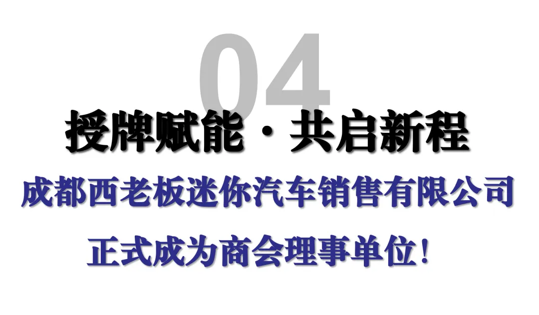 立足新起点,四川省二手车商会将携手成都西老板迷你汽车销售有限公司等标杆会员企业,以示范引领带动行业整体提质升级,以诚信经营擦亮川派二手车区域品牌名片,赋能汽车消费市场扩容增效,为助推国内汽车流通产业高质量发展贡献重要力量。