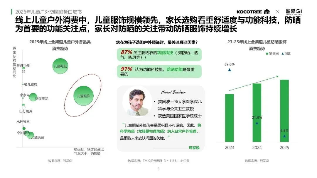 我国儿童户外运动正迎来高速发展新阶段。政策层面,国家从"保障章锻炼间"到"建设高质量户外目的地",为儿童户外活动提供制度保障。家庭层面,超85%的家长愿意带孩子走向户外,近70%的家庭更愿意将预算投向户外体验;在政策与需求共同驱动下,儿童户外相¥市场规模预计将由2021年的435亿元增长至2027年的1096亿元。