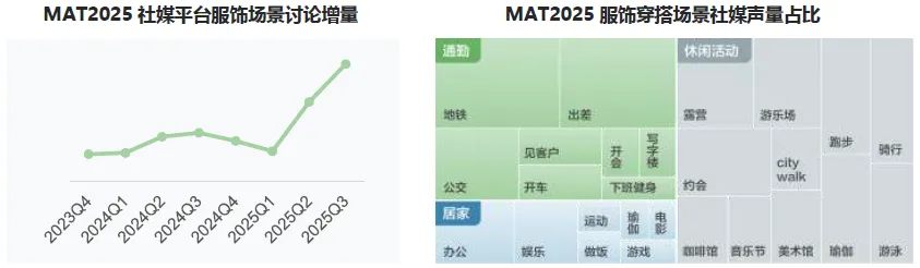 生活场景的碎片化,催生了服饰需求的精准匹配。从“居家健身”(声量+130%)到“下班后约会”(声量+400%),从“咖啡馆穿搭”到“新疆旅游穿搭”,每一个微小的生活切片,都对应着一套独特的“战袍”。