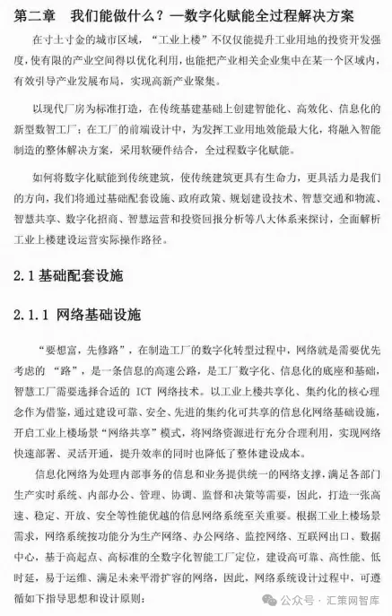 将数字化技术融入到建筑中,用建筑全过程咨询视角来看工业上楼的解决方案,同时聚集政府主管部门、国企单位、IT设备制造业、互联网相关服务商、设计总承包、施工总承包单位、总集单位等力量,将网络基础设施、算力基础和绿色建筑技术做为产业园基础配套设施,从基础配套设施、政府政策、规划建设技术、智慧交通和物流、智慧共享、数字化招商、智慧运营和投资回报分析八大体系,全面解析工业上楼建设运营实际操作路径,力图在深圳打造低碳、绿色建筑和智慧建筑的高质量产业园区,以满足日益发展的工业上楼需求。