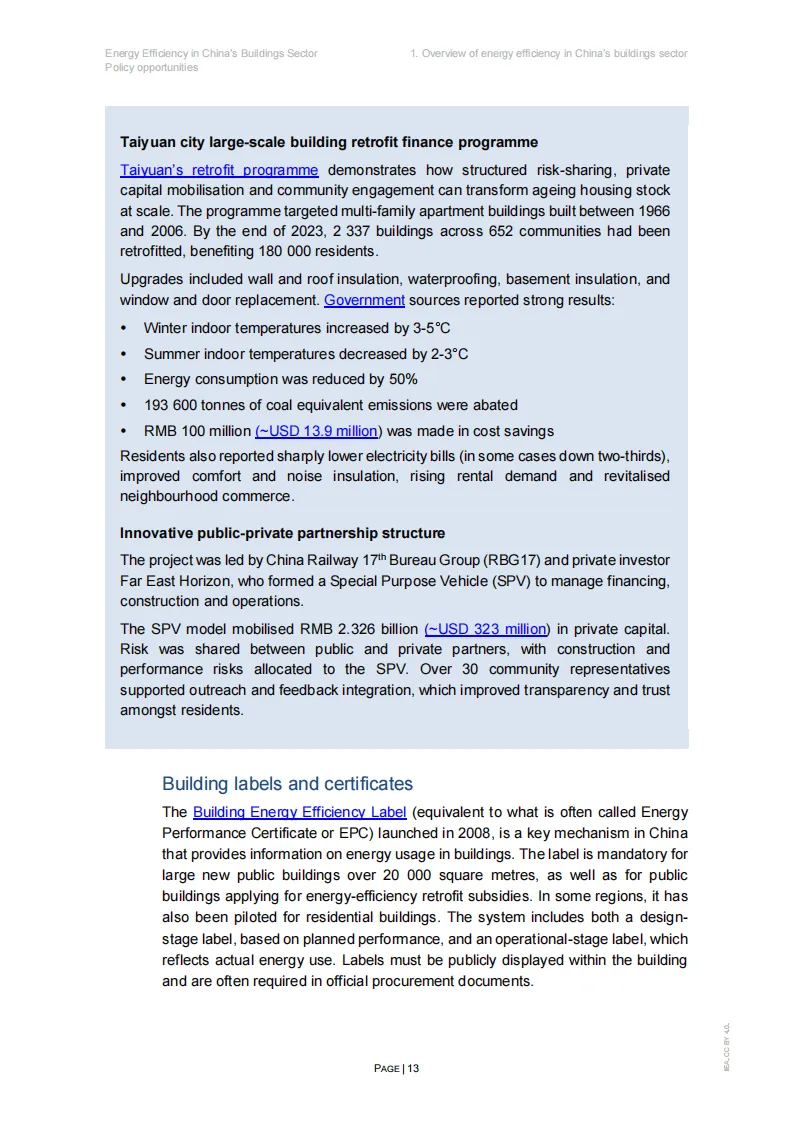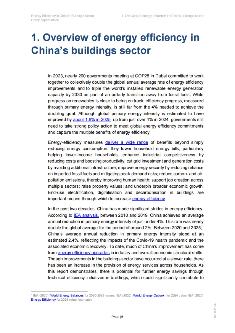 这份IEA发布的《中国建筑行业能源效率:政策机遇》报告,系统梳理了中国建筑能效发展现状、国际趋势与政策优化方向,核心结论清晰且具实操性。