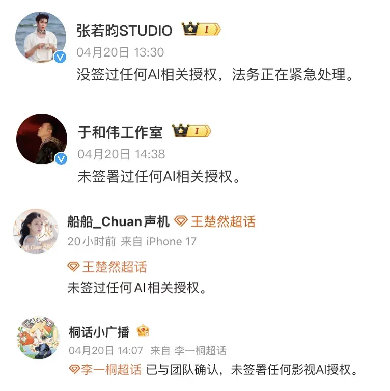 话音未落,张若昀、于和伟、李一桐等一串明星工作室火速辟谣:没签过,法务在处理。
