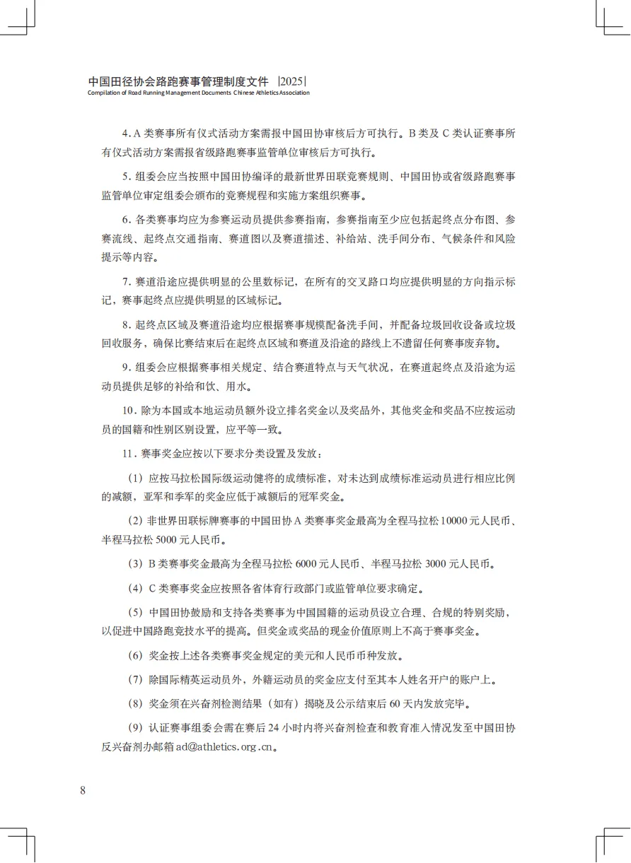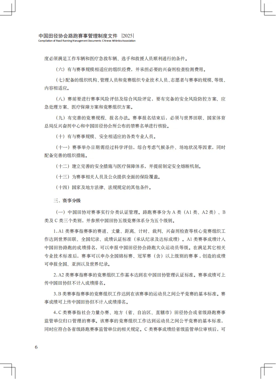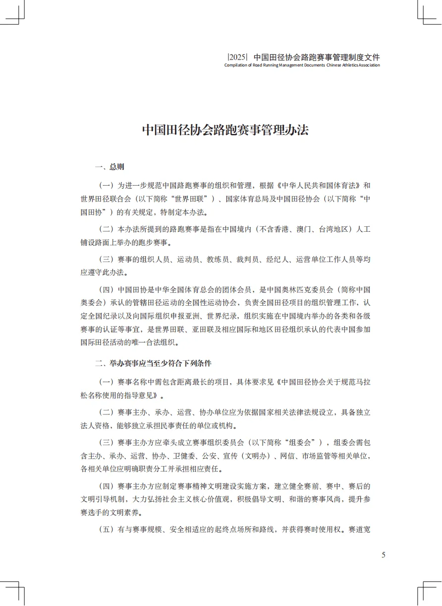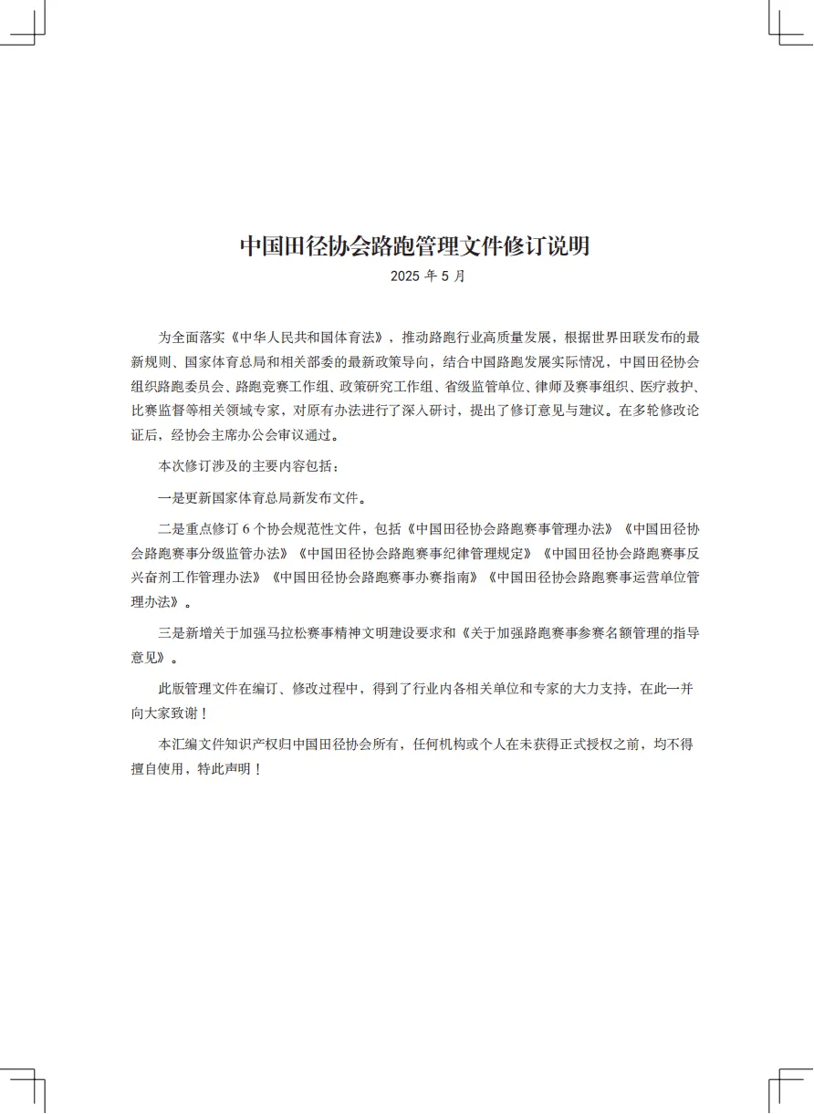 这份2025版《中国田径协会路跑赛事管理制度文件》,全面构建了国内路跑赛事从办赛、认证、监管到参赛、保障的全流程规范体系,核心围绕安全、规范、公平、有序推进路跑行业高质量发展。