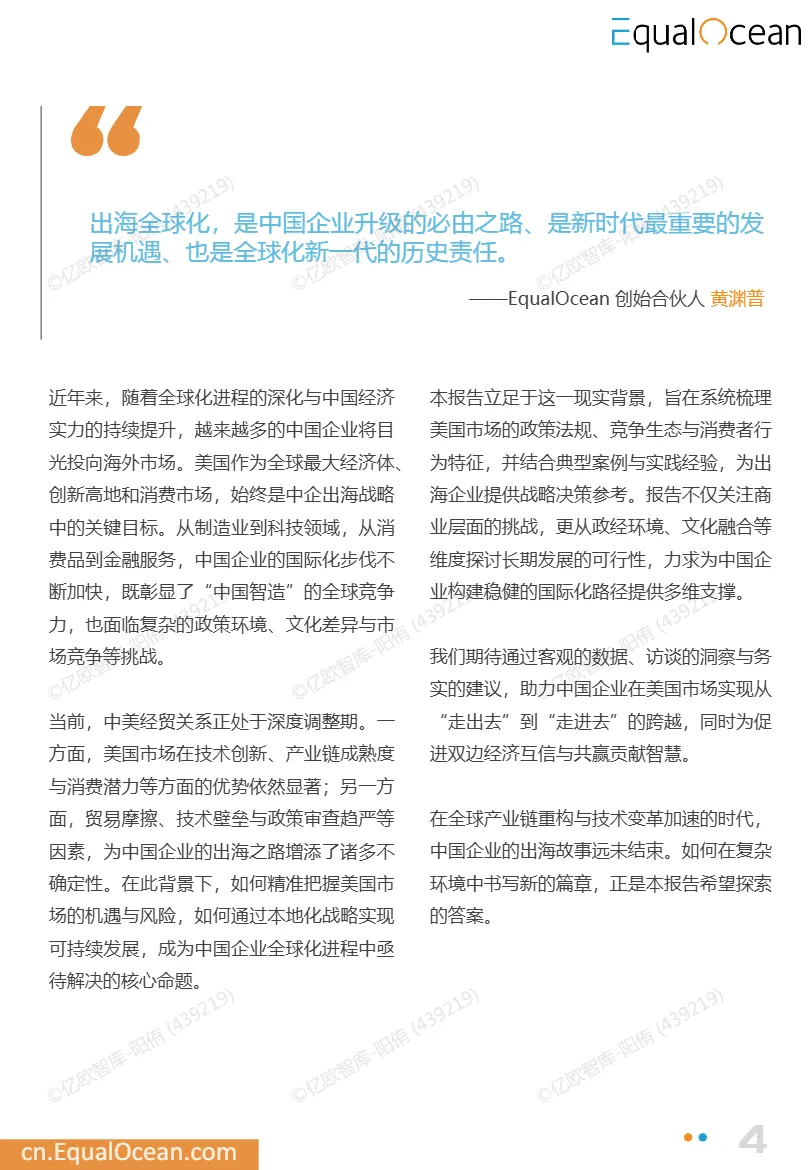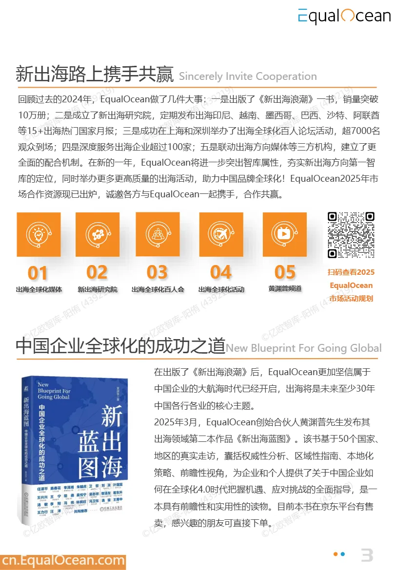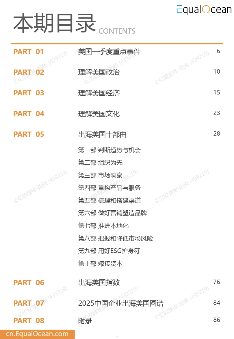 • 出海美国“十部曲”方法论:EqualOcean提出系统性出海路径——从趋势判断、组织搭建、市场洞察到资本嫁接,其中重构产品与服务、推进本地化、用好ESG护身符是穿越周期的核心能力。