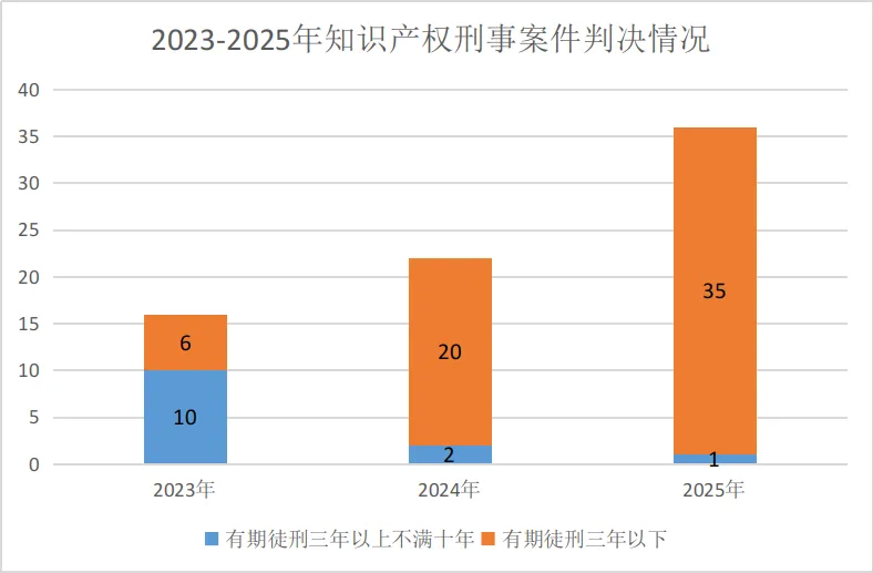 3.判决情况。2023年审理法院作出一审判决9件16人,其中判处有期徒刑三年以上不满十年的10人,占比62.5%;判处有期徒刑三年以下的6人,占比37.5%。2024年审理法院作出一审判决15件22人,其中判处有期徒刑三年以上不满十年的2人,占比9.1%;判处有期徒刑三年以下的20人,占比90.9%。2025年审理法院作出一审判决22件36人,其中判处有期徒刑三年以上不满十年的1人,占比2.8%;判处有期徒刑三年以下的35人,占比97.2%。撤回起诉、无罪案件数均为0件。