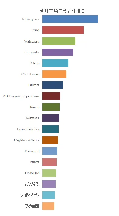 Novozymes、 DSM、 WalcoRen、 Enzymaks、 Meito、 Chr. Hansen、 DuPont、 AB Enzyme Preparations、 Renco、 Mayasan、 Fermentaholics、 Caglificio Clerici、 Dairygold、 Junket、 OMNOM、 安琪酵母、 无锡杰能科、 夏盛集团