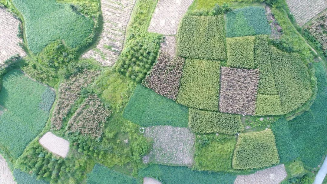 图为,蓝田镇公闪村山地糯小米种植基地航拍图