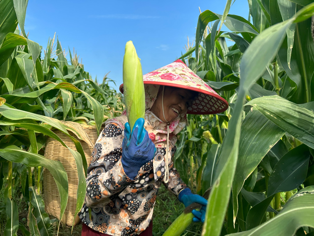 为近日,社学村村民正在玉米种植基地采摘玉米