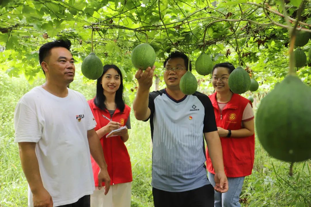 为近日,坪地镇吊瓜种植“土专家”在三鑫村吊瓜种植基地给年轻干部传授吊瓜种植技术和病虫害防治。
