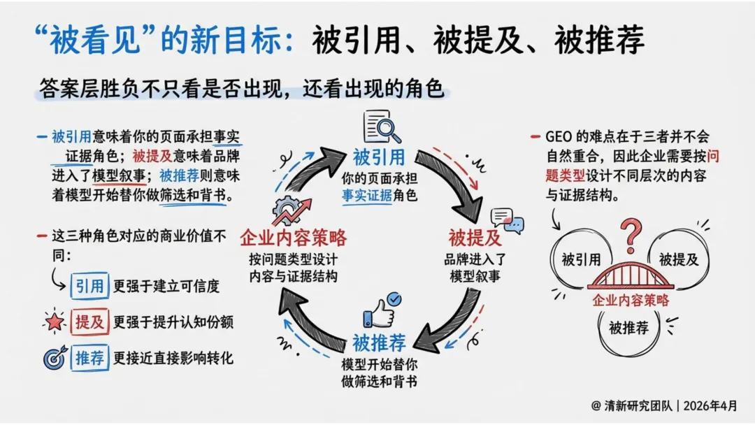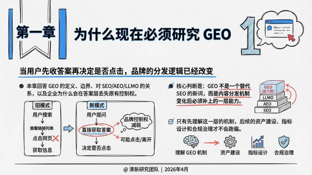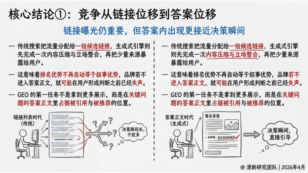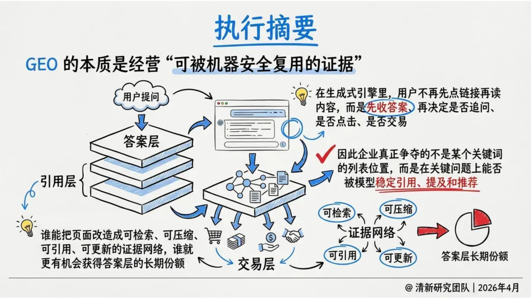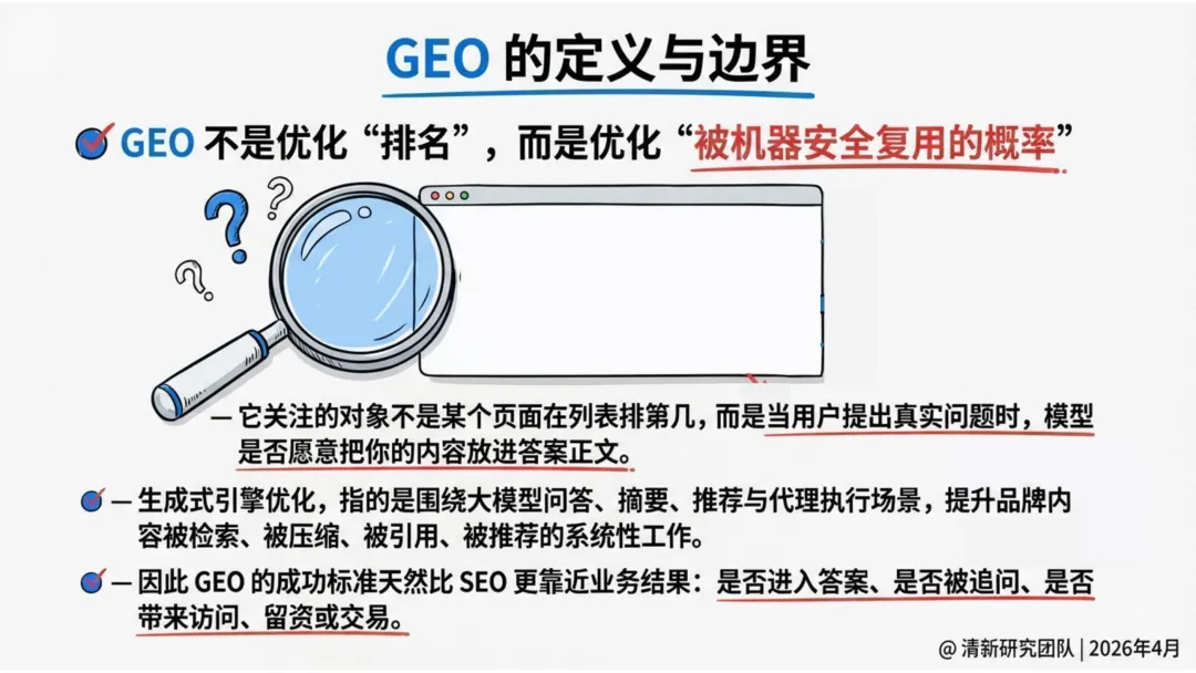 GEO的目标不再是提升网页排名,而是让品牌信息成为大模型生成答案中的“首选信源”。