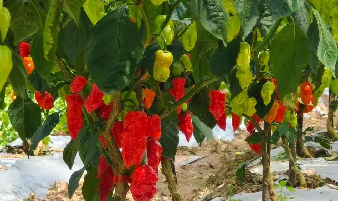在永顺村近7公顷的高辣素辣椒种植示范基地里,一串串品相饱满的辣椒挂满枝头,村民们井然有序地忙碌着,一幅生动和谐的丰收图景徐徐展开。