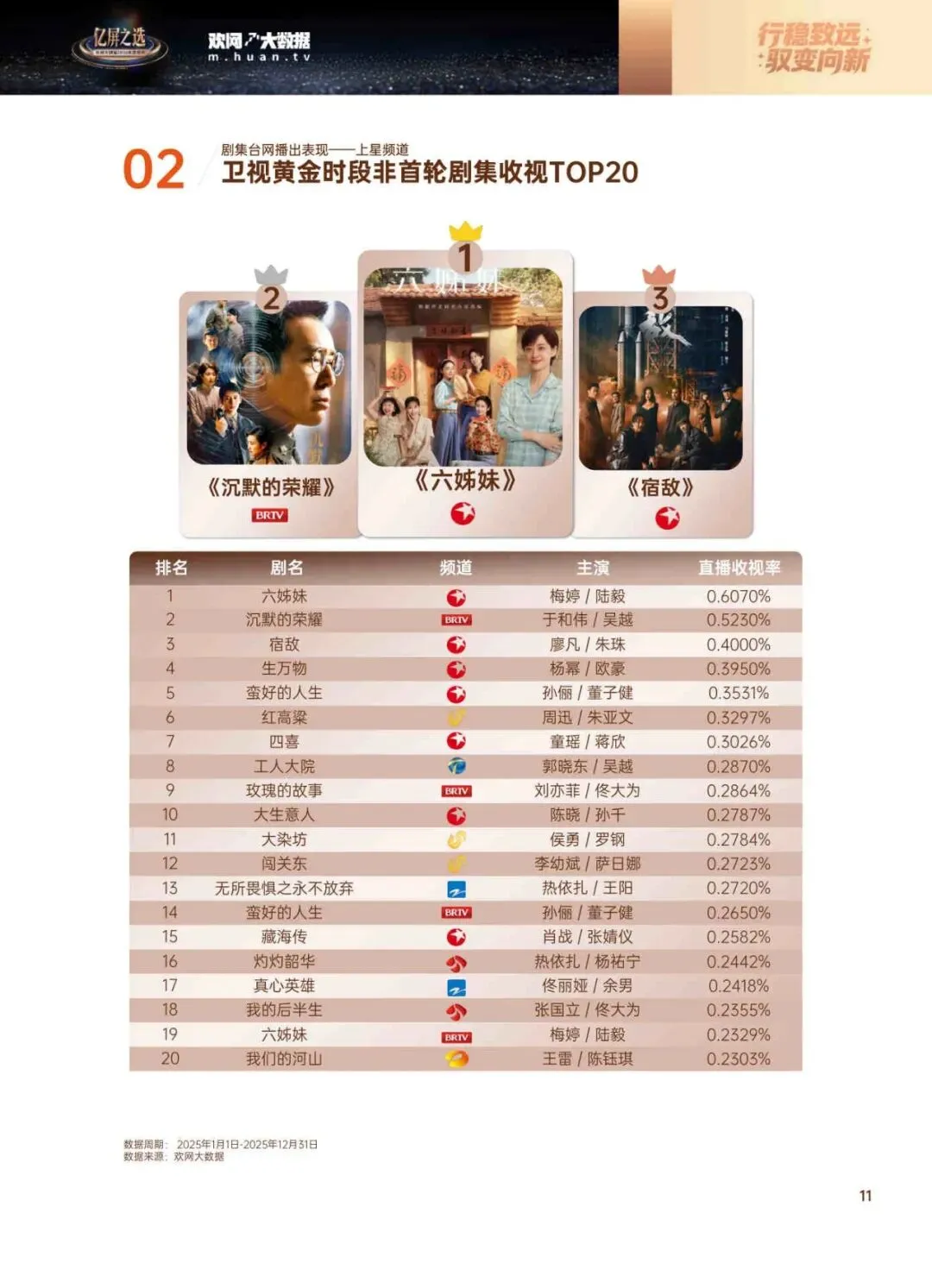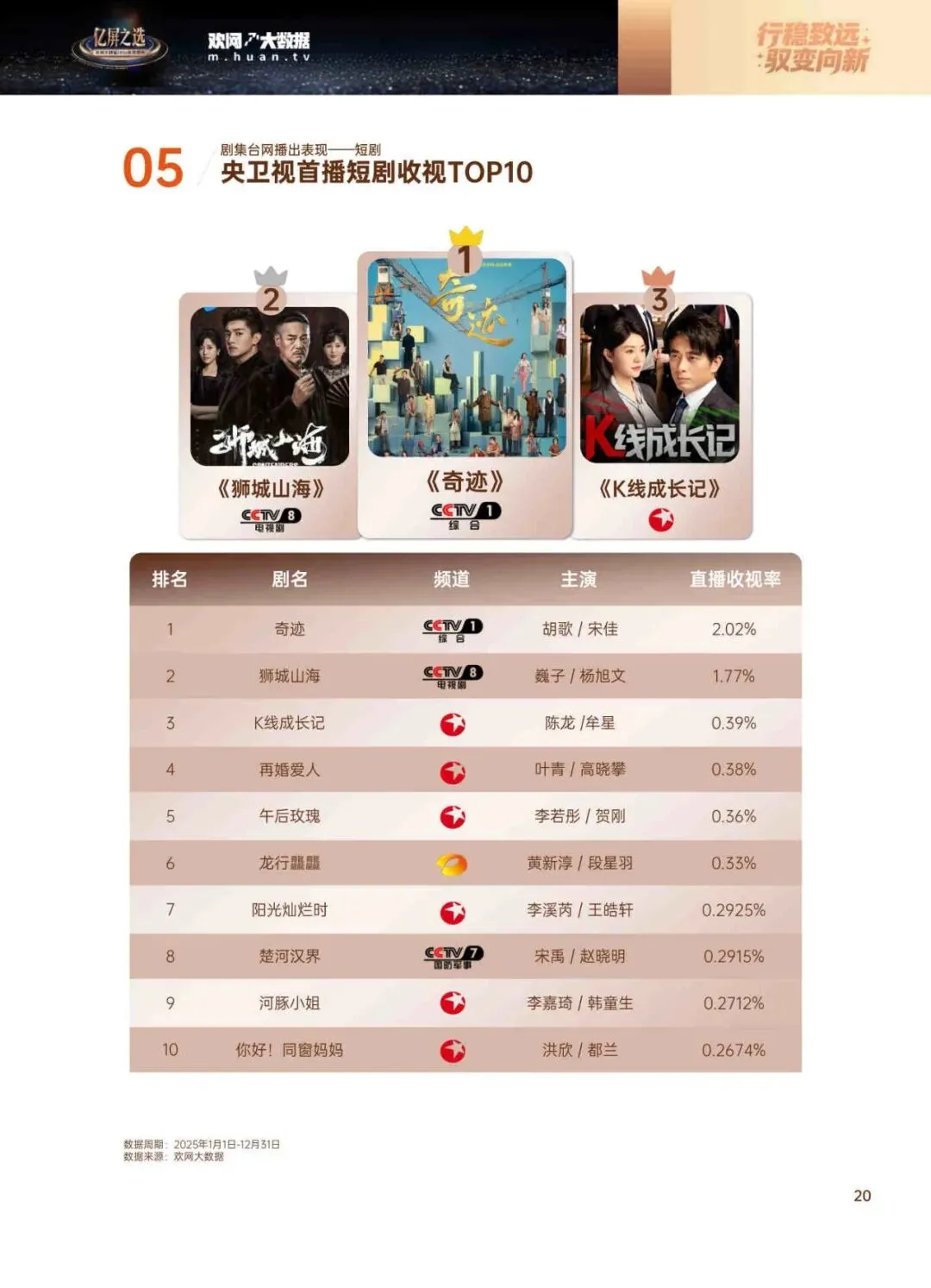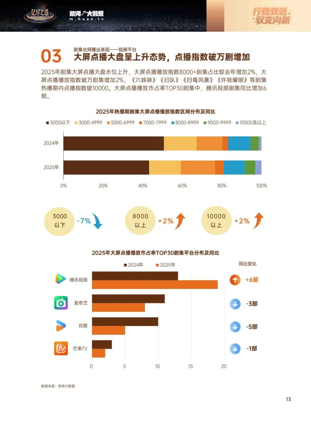 这份报告是欢网大数据出的,专门盘点了2025年大家到底在电视上看了啥剧。