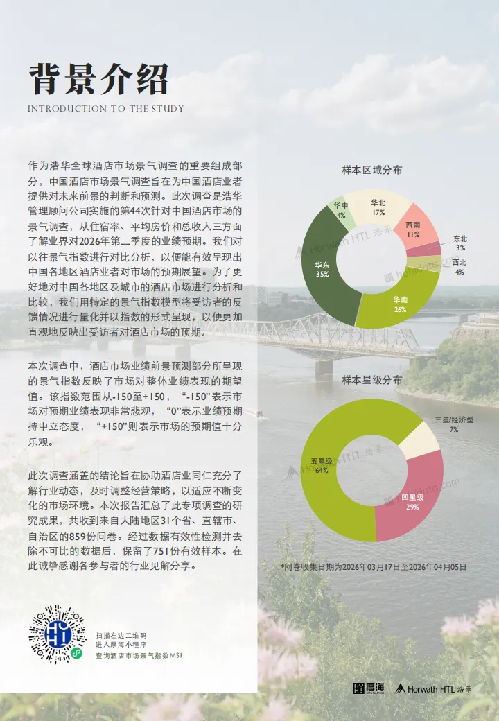 随着浩华管理顾问公司发布最新的《2026年第二季度中国酒店市场景气调查报告》,我们得以窥见行业复苏的真实肌理。这份涵盖了全国31个省市、751份有效样本的“体检报告”,揭示了一个充满张力的市场现状:信心正在回归,但价格仍在挣扎。