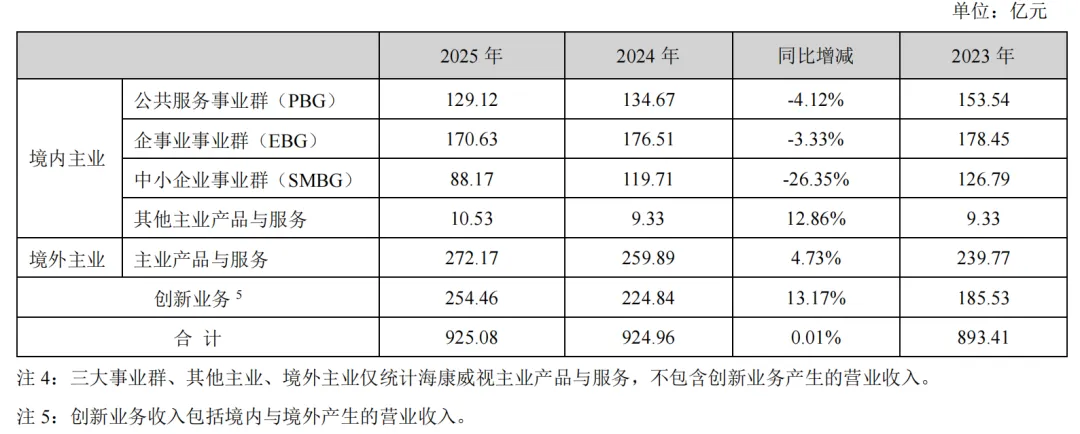 海康的收入来源包含主业产品及服务和创新业务两项,简述如下: