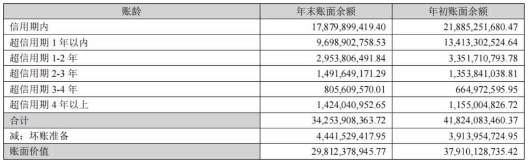 往来账款:376亿元,占总资产27.2%,相较2024年下降16.7%,2026年Q1持续降低至355亿元。最值得关注的是应收账款与合同资产的坏账风险。