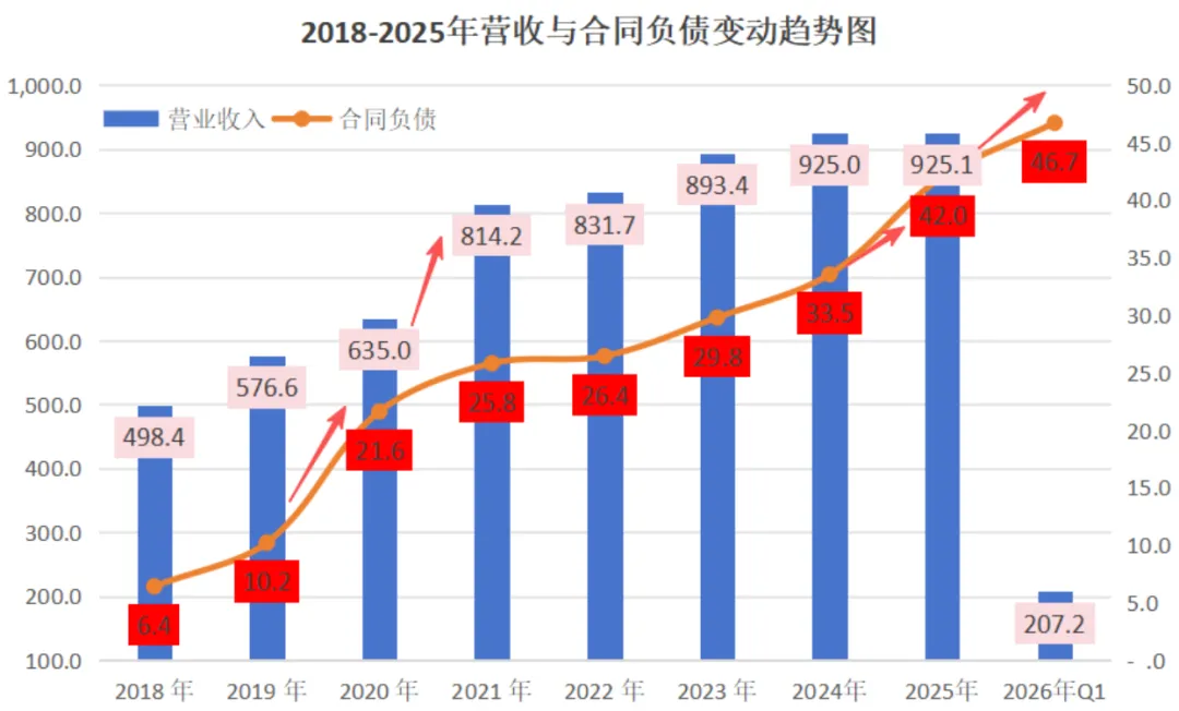 合同负债:42亿元,已创历史新高,2026年Q1再增加至46.7亿元,值得深入剖析: