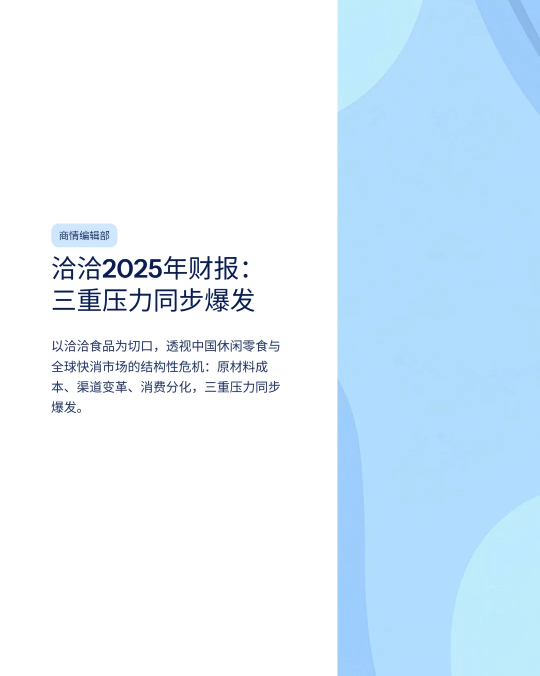 2025年,全球快消品与休闲食品行业经历了一场由气候变化、渠道重组与消费转移引发的财务震荡。以洽洽食品为样本,其2025年财报数据,客观揭示了制造企业在营收缩减与成本高企双重挤压下的生存状态。