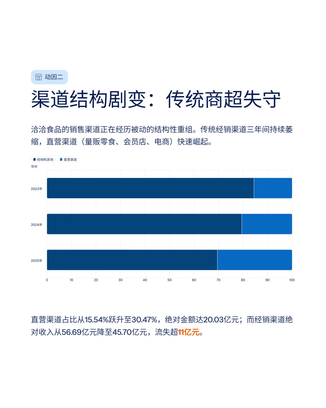 传统流通渠道营业收入占总营收的比重,从2023年的84.46%下滑至2025年的69.53%。