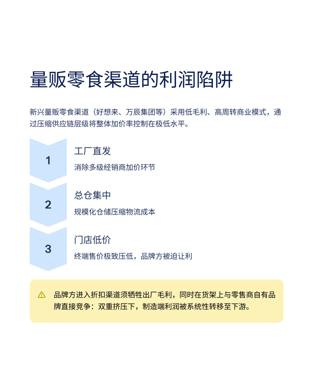 品牌方在进入量贩渠道时必须接受苛刻的供货价格,使得制造环节的利润空间缩小。