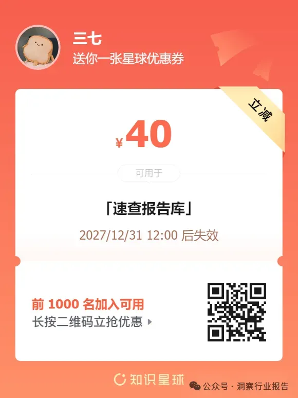 需要下载完整版报告的朋友,可以扫下方优惠券付费成为会员,(现在加入仅需26/年)200000+份报告,随意下载,不受限制,(支持PC端/APP),星球保持每日更新。客服微信:SCBGK666