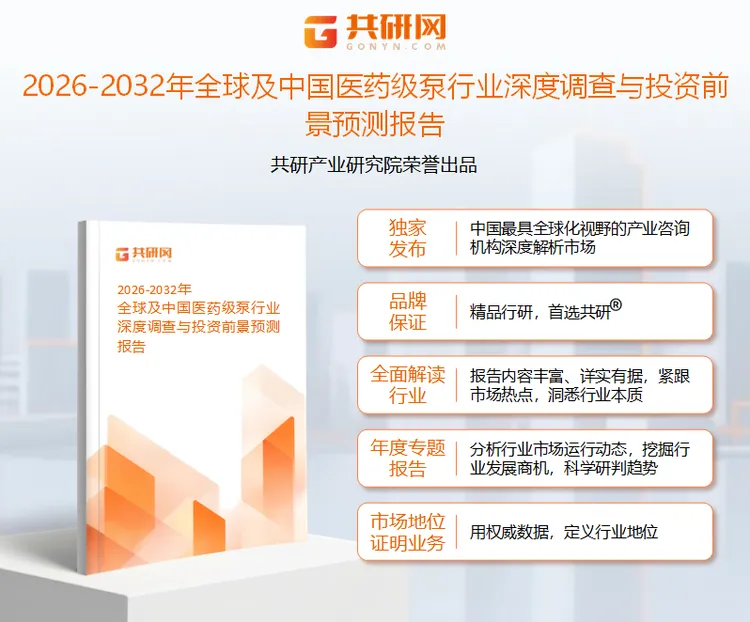 共研产业研究院通过对公开信息分析、业内资深人士和相关企业高管的深度访谈,以及分析师专业性判断和评价撰写了《2026-2032年全球及中国医药级泵行业深度调查与投资前景预测报告》。本报告为医药级泵企业决策人及投资者提供了重要参考依据。