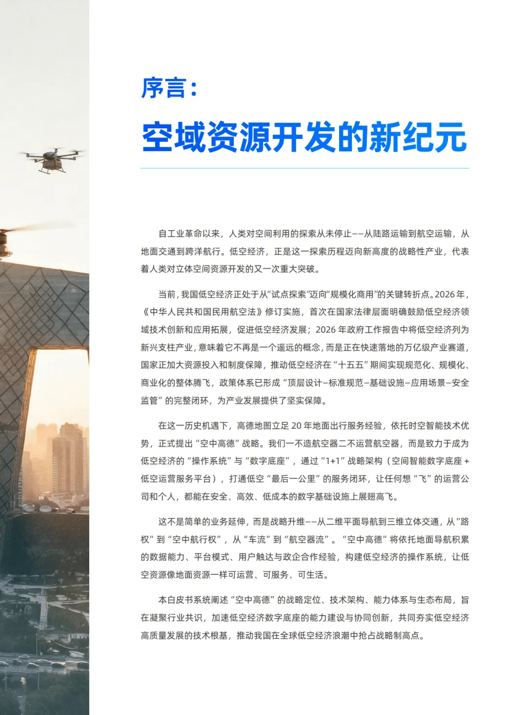 白皮书系统阐述“空中高德”的战略定位、技术架构、能力体系与生态布局,旨在凝聚行业共识,加速低空经济数字底座的能力建设与协同创新,共同夯实低空经济高质量发展的技术根基,推动我国在全球低空经济浪潮中抢占战略制高点。