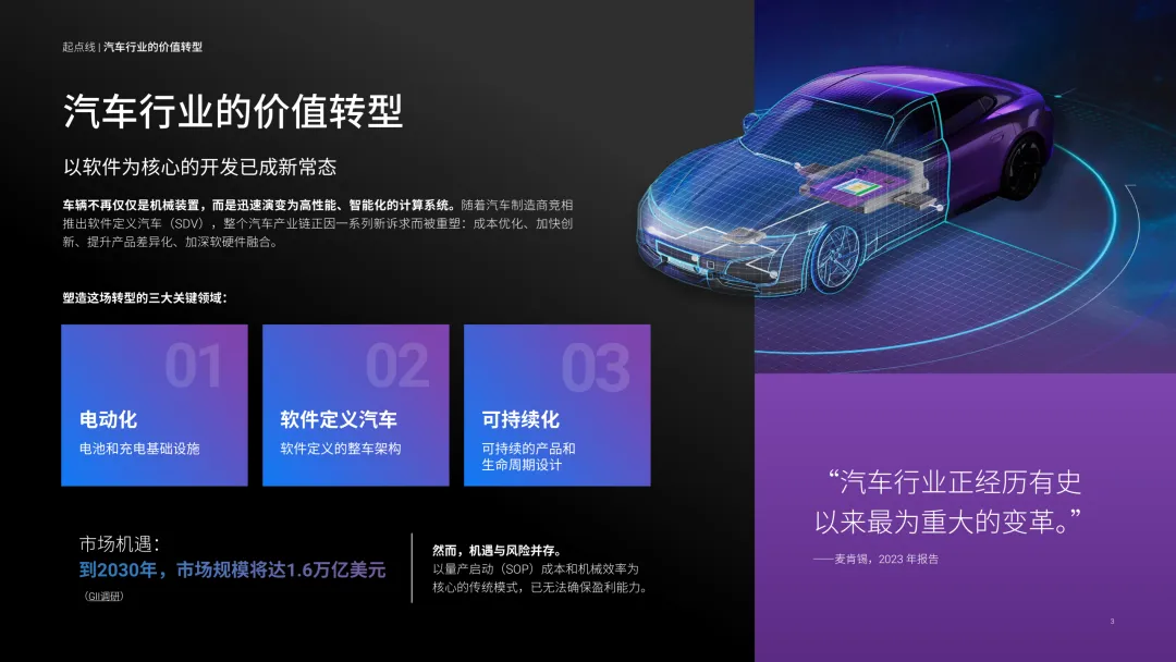 汽车行业正从机械制造转向软件驱动的智能计算系统,传统研发模式成本高、周期长、集成滞后,已无法支撑行业盈利与创新需求,芯片与系统融合、整车虚拟化成为破局关键。
