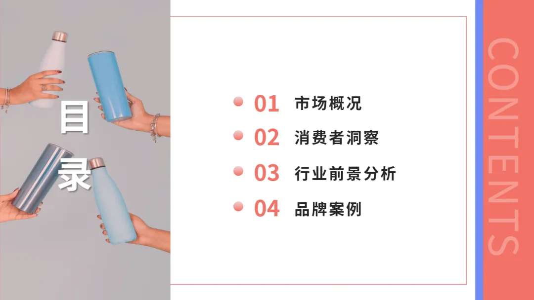 • 消费者偏好趋势:不锈钢材质主导市场(2023年占比超50%),双层真空结构最受欢迎;容量上≤500ml小杯型占60%份额,但>500ml大容量杯增速最快;颜色与设计上,纯色款(35%)和图案款(30%)最受欢迎,定制化与联名款成为情感连接利器。