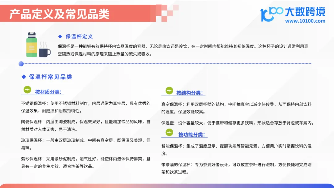 • 出海核心机遇与挑战:中国占全球保温杯产量近70%,“长三角+珠三角”形成完整产业带,具备供应链优势;但面临欧美高合规门槛(如FDA、LFGB、重金属迁移标准)、品牌认知度不足等问题,需通过DTC独立站+多平台布局(亚马逊、Walmart、Shopee)破局。