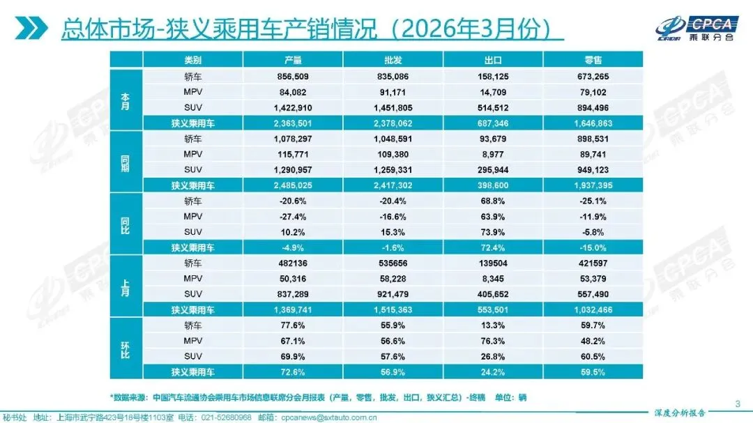 汽车行业:2026年3月全国乘用车市场深度分析报告