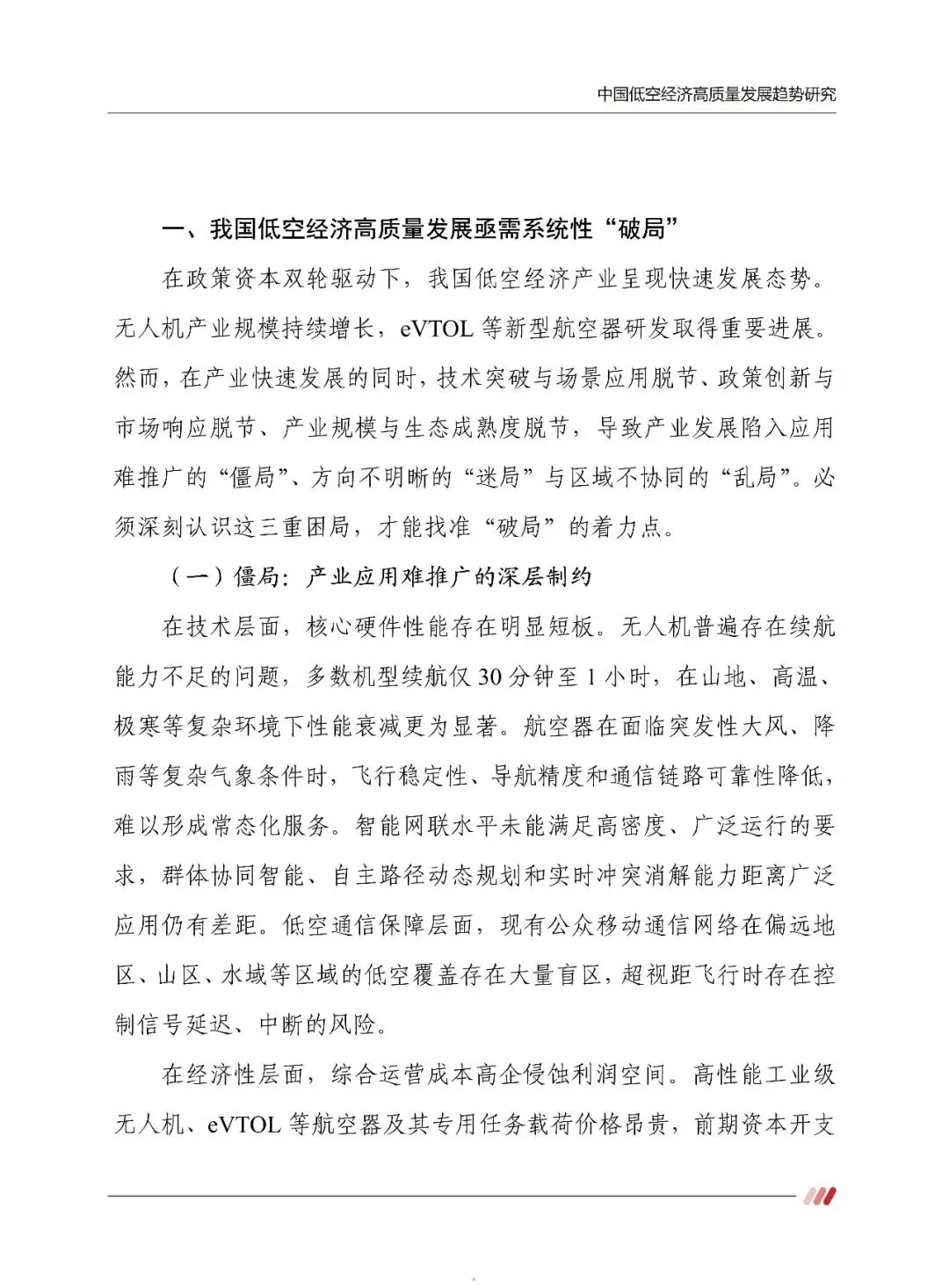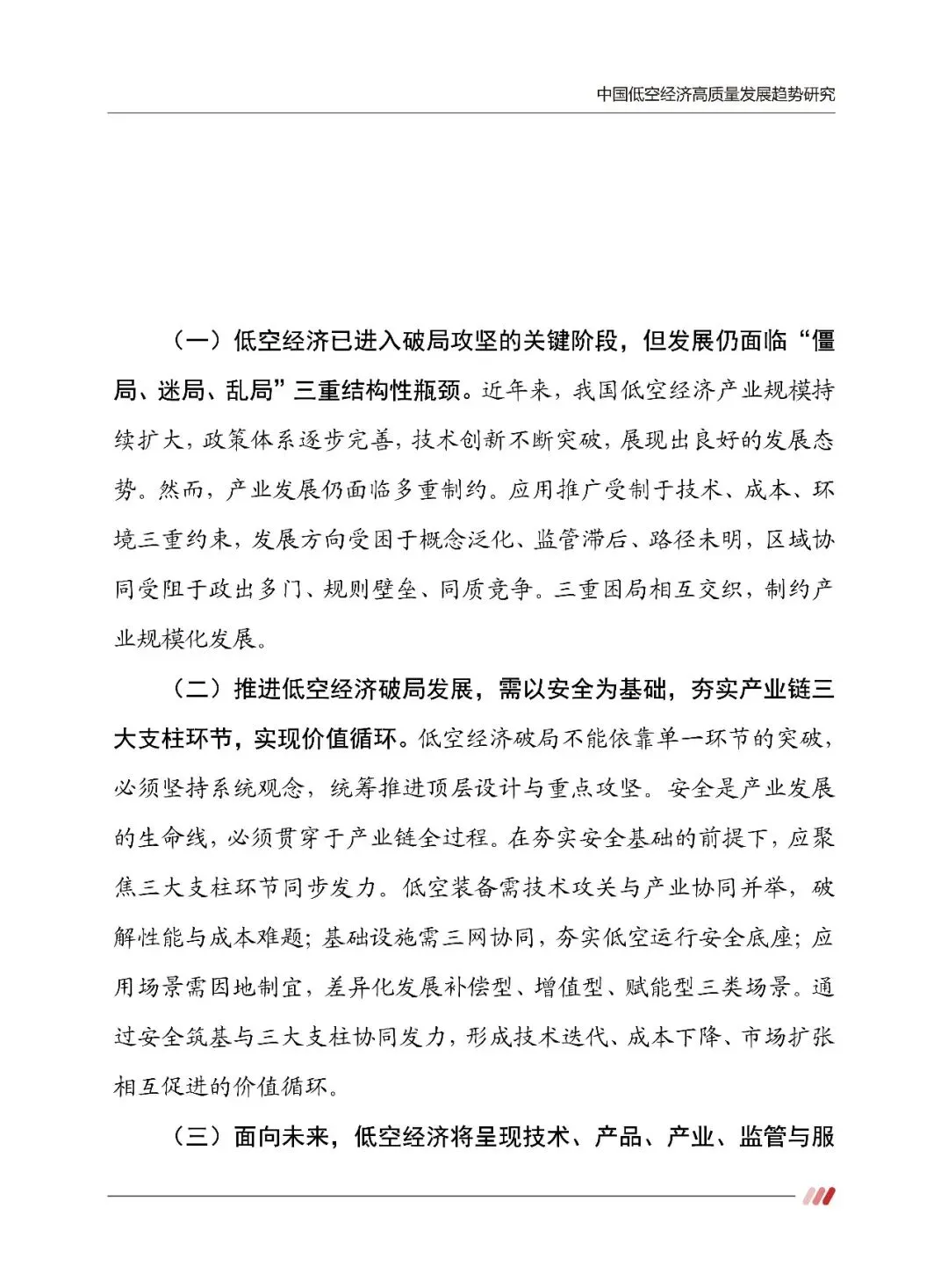 中国低空经济高质量发展趋势研究报告全面分析了我国低空经济产业链发展概况、未来趋势,在指出发展问题的同时,报告更是着重给出了系统性的破局之道。
