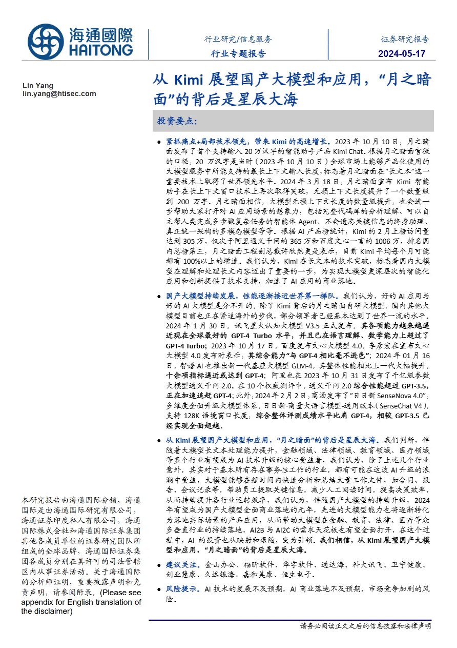 应用场景:适用于搭建智能客服系统、优化海外市场内容生产流程、设计AI辅助的选品与定价策略、开发面向海外企业的文档智能处理工具时作为技术选型与趋势研判的决策参考。尤其适合在规划2024年“AI+出海”战略时,评估如何利用国产大模型的长文本与多模态能力,构建差异化竞争力。