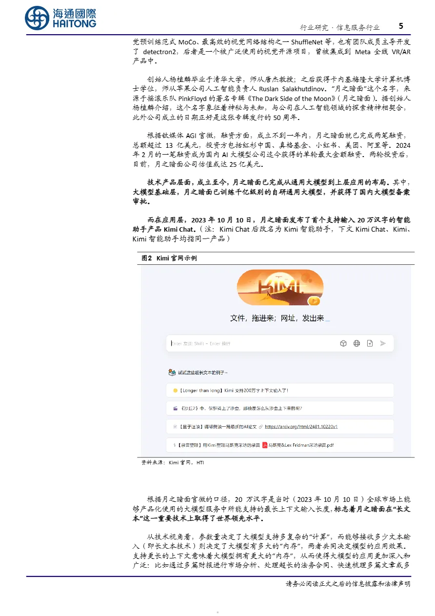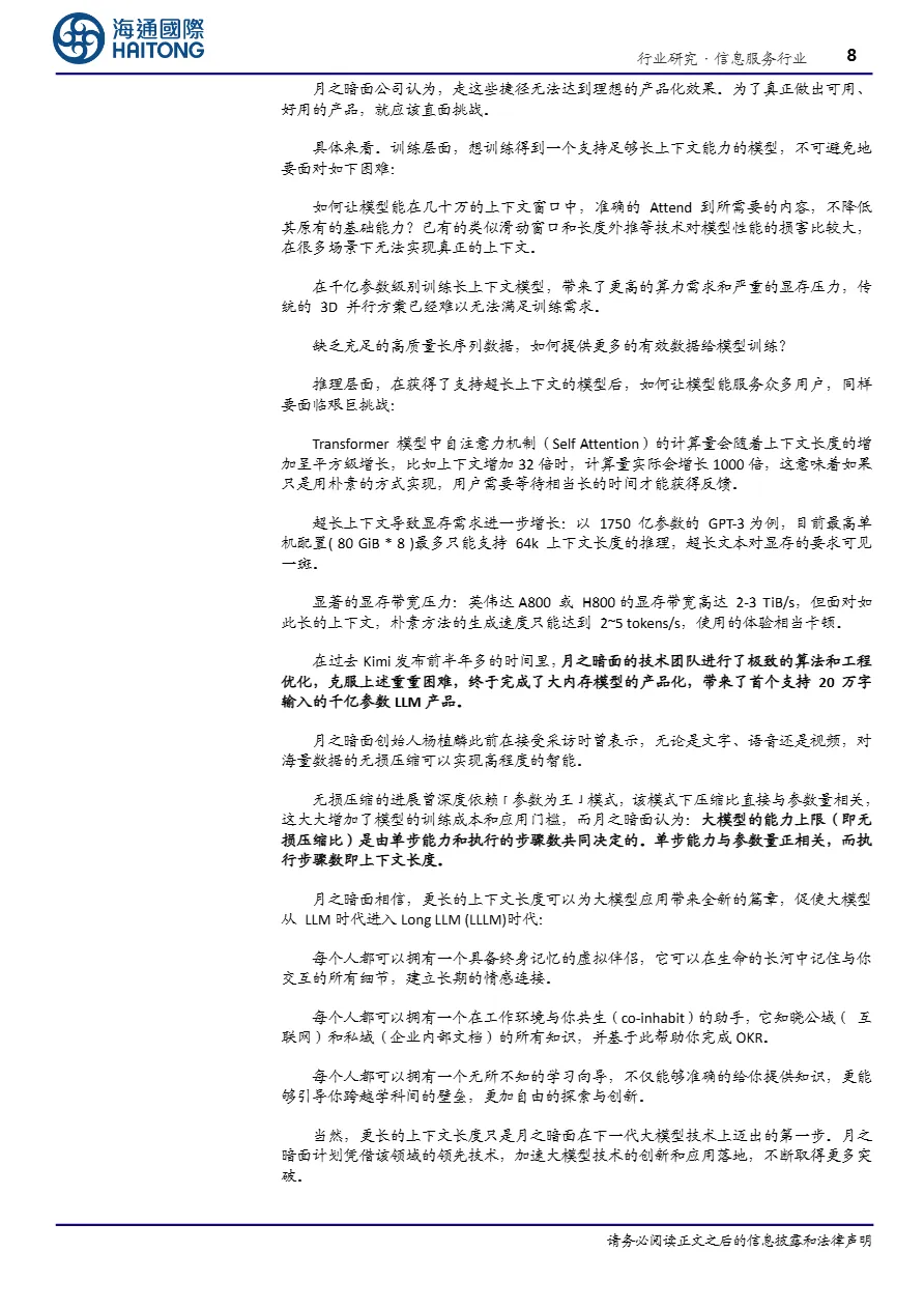 • 200万汉字无损上下文支持:月之暗面推出的Kimi智能助手已实现200万字超长上下文输入,远超GPT-4-32k(约2.5万字),可一次性处理数十份财报、整本医学教材或完整代码库,彻底释放AI在金融研报、法律阅卷、技术文档分析等场景的潜力。