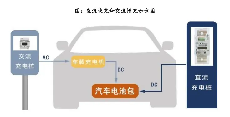 车载充电机应用于交流慢充场景,直流快充发展不意味着慢充将被取代。新能源汽车的充电方式主要包括交流电充电和直流电充电两种,使用交流电充电时,需使用OBC将交流电转换为直流电;使用直流电充电时,直流电可直接适配动力电池输入端口,无需使用OBC。当前直流充电方式快速发展,但这并不意味慢充将被取代:长期使用直流方式将缩短电池寿命,大部分车上同时装有快充、慢充两个接口。