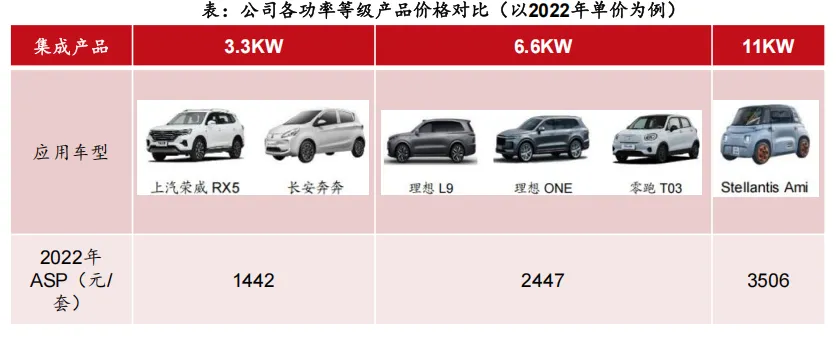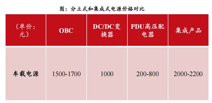 2)轻量化方面:以比亚迪产品为例,相比分立式产品,其电源三合一产品体积缩小40%,整体重量均降低25%。