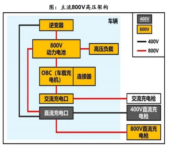 (二)高压化:800V是快充最优解决路径,主流方案为“ 车载部件全系800V+电驱升压”